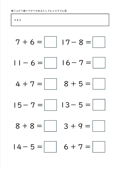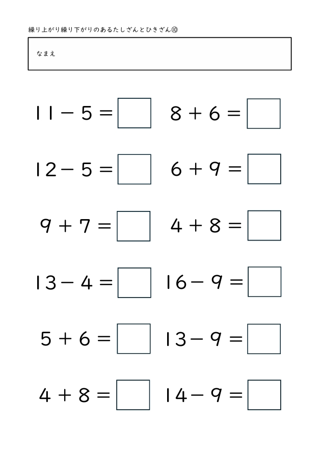 繰り上がり繰り下がりのあるたしざんひきざん 2025.10.29 たしざんとひきざん1 たしざんとひきざん2 たしざんとひきざん3 たしざんとひきざん4 たしざんとひきざん5 たしざんとひきざん6 たしざんとひきざん7 たしざんとひきざん8 たしざんとひきざん9 たしざんとひきざん10