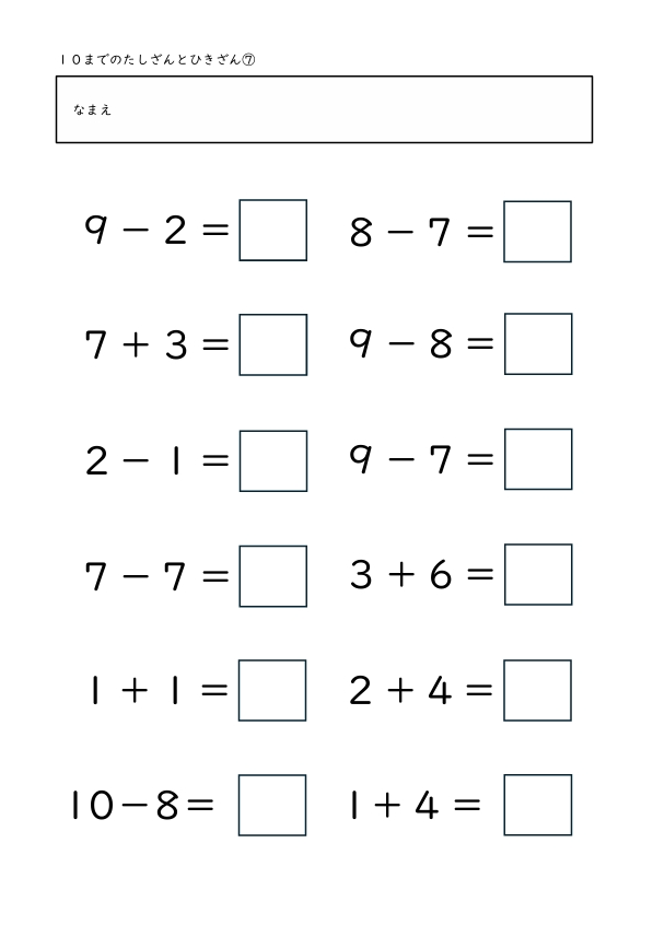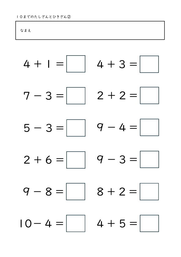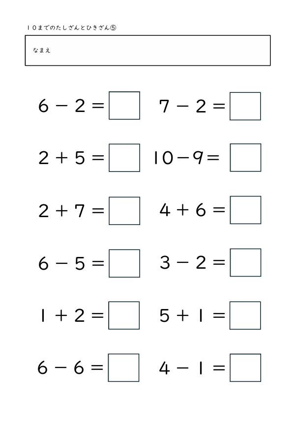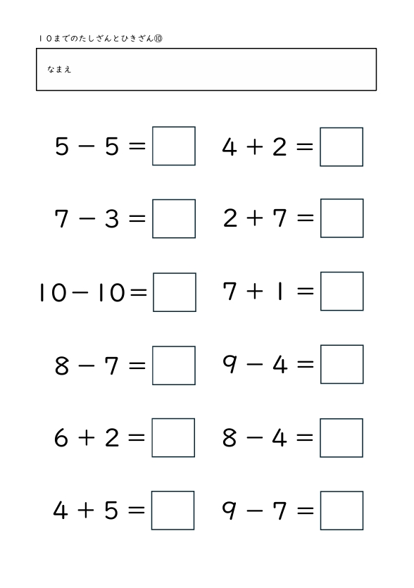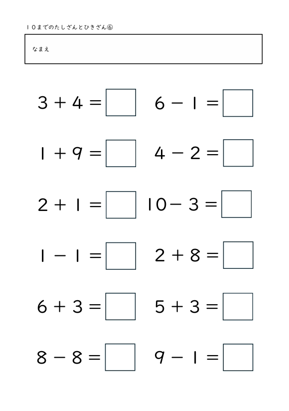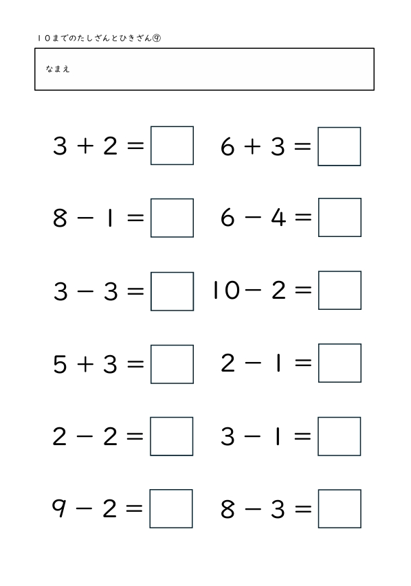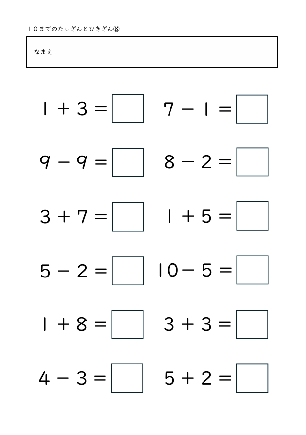 10までのたしざんとひきざん 2025.10.29 たしざんとひきざん1 たしざんとひきざん2 たしざんとひきざん3 たしざんとひきざん4 たしざんとひきざん5 たしざんとひきざん6 たしざんとひきざん7 たしざんとひきざん8 たしざんとひきざん9 たしざんとひきざん10