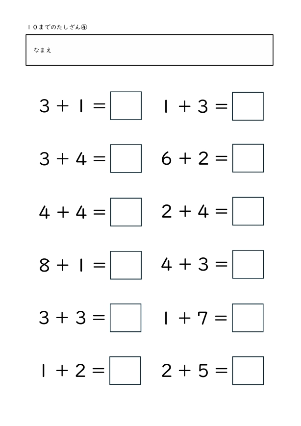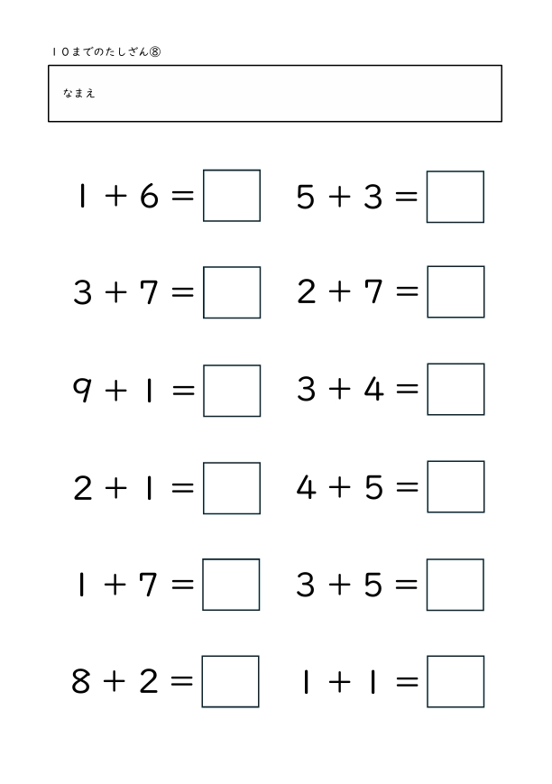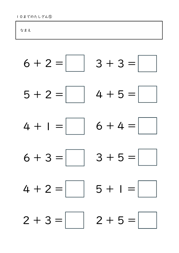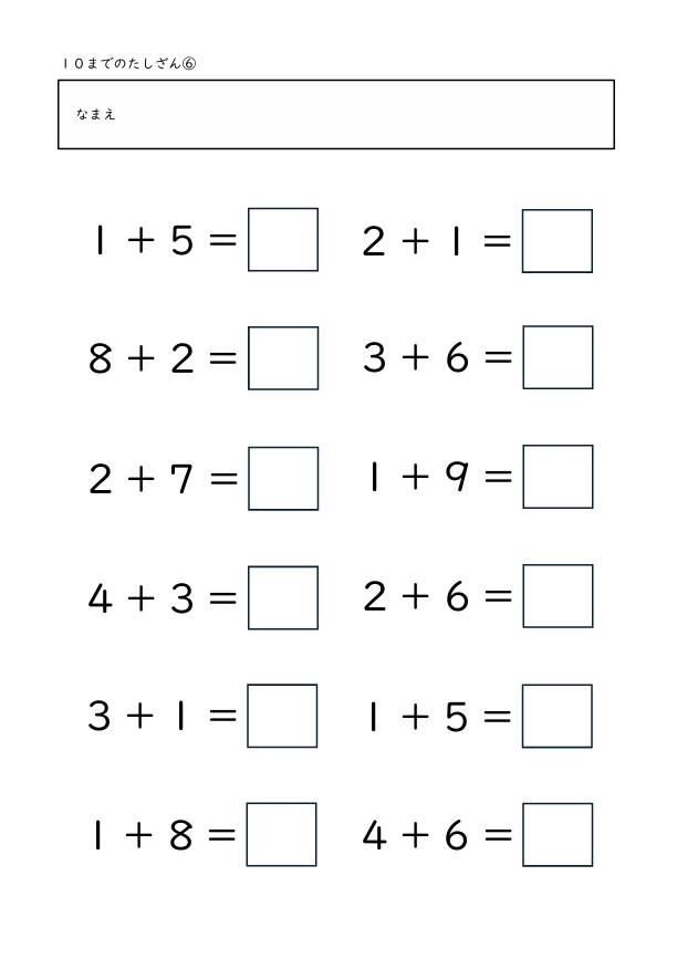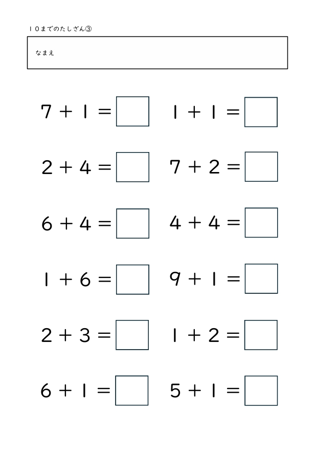 10までのたしざん(12問) 2025.10.28 10までのたしざん1 10までのたしざん2 10までのたしざん3 10までのたしざん4 10までのたしざん5 10までのたしざん6 10までのたしざん7 10までのたしざん8 10までのたしざん9 10までのたしざん10 10までのたしざん12-1 10までのたしざん12-2 10までのたしざん12-3 10までのたしざん12-4 10までのたしざん12-5 10までのたしざん12-6 10までのたしざん12-7 10までのたしざん12-8 10までのたしざん12-9 10までのたしざん12-10