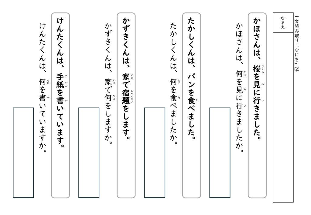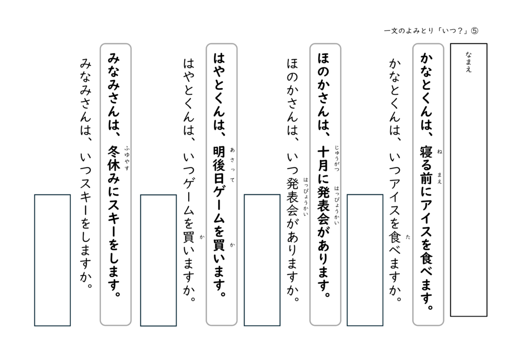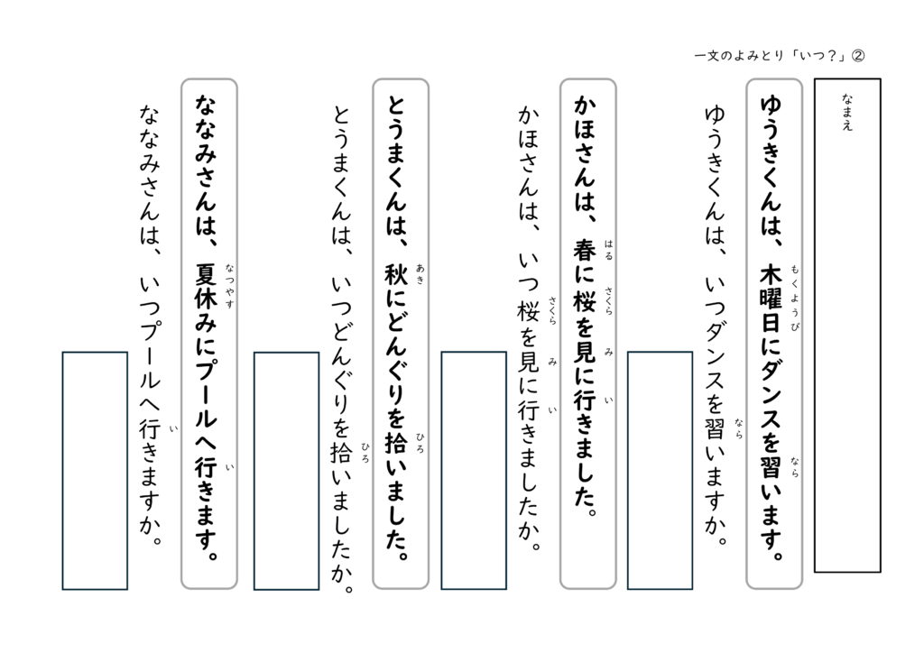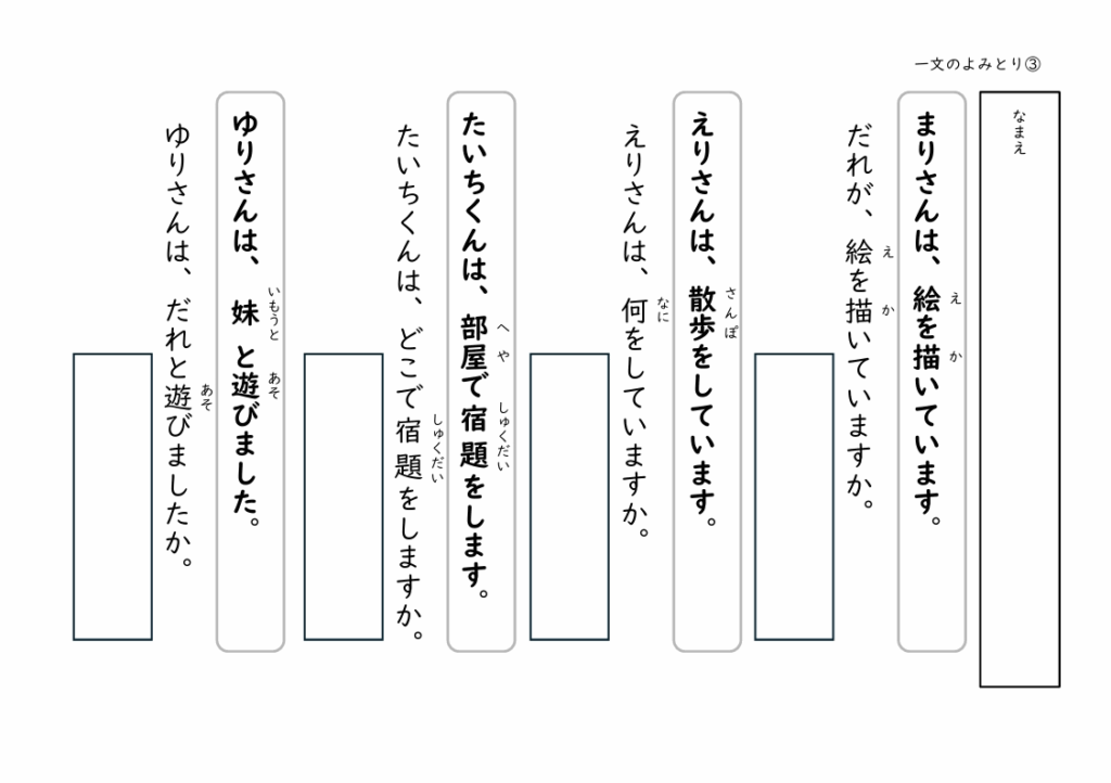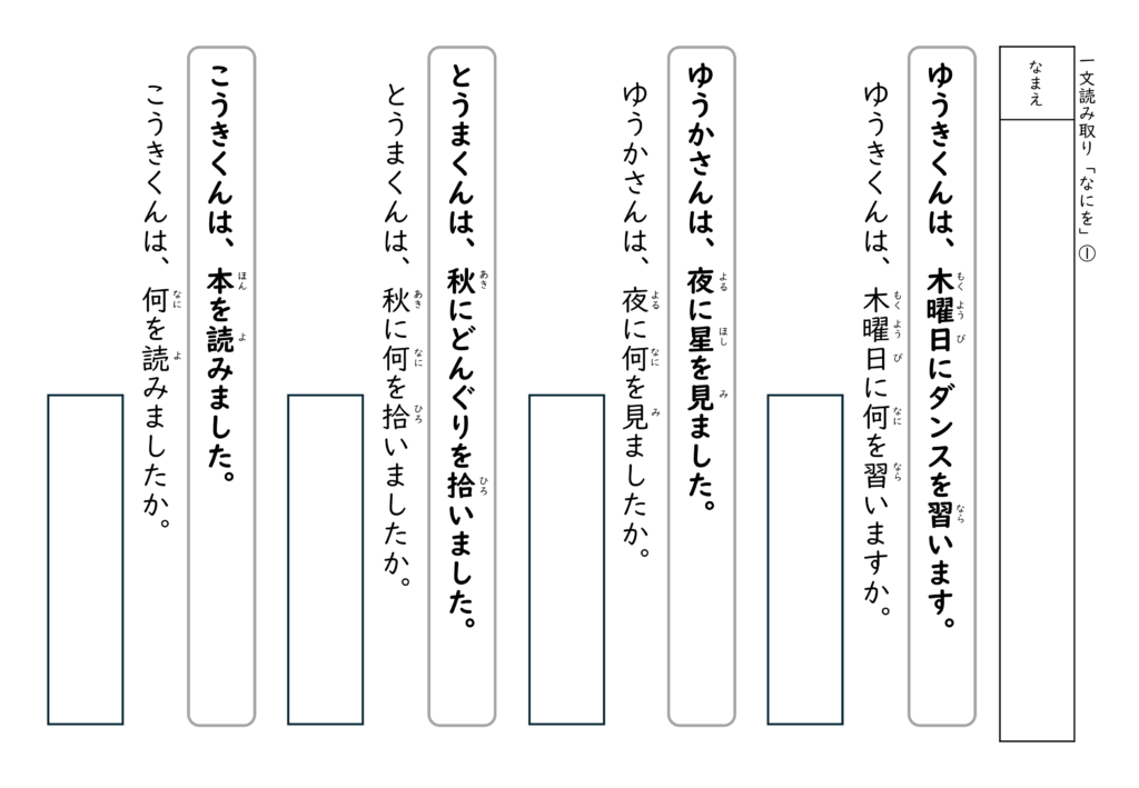 文を読んで答える経験を積むことで、子どもたちは「文の中には答えがある」ということを少しずつ理解していきます。