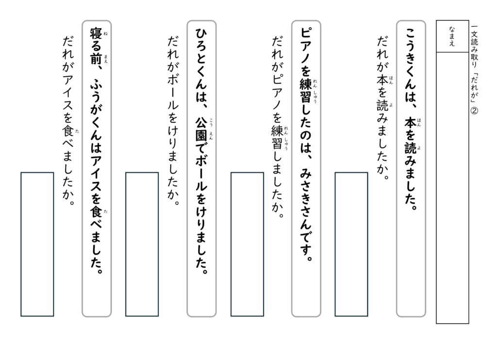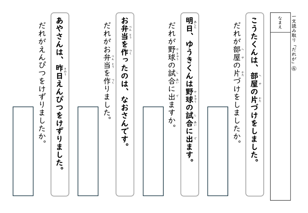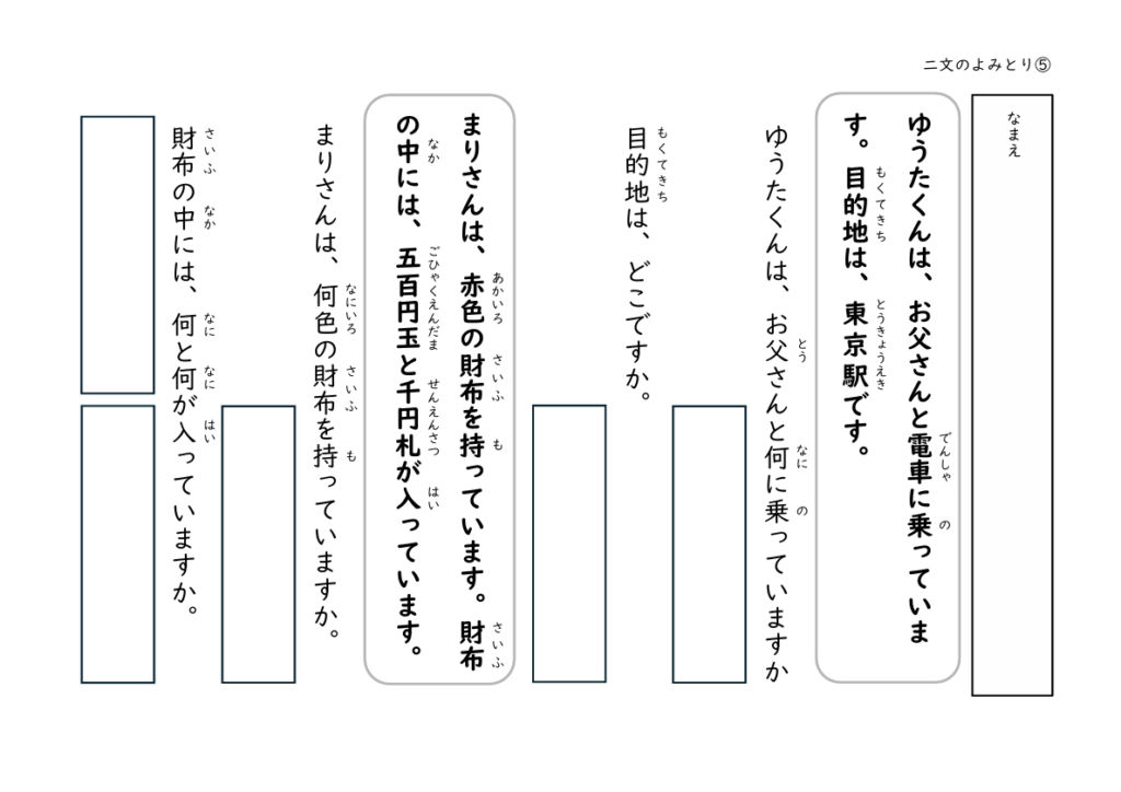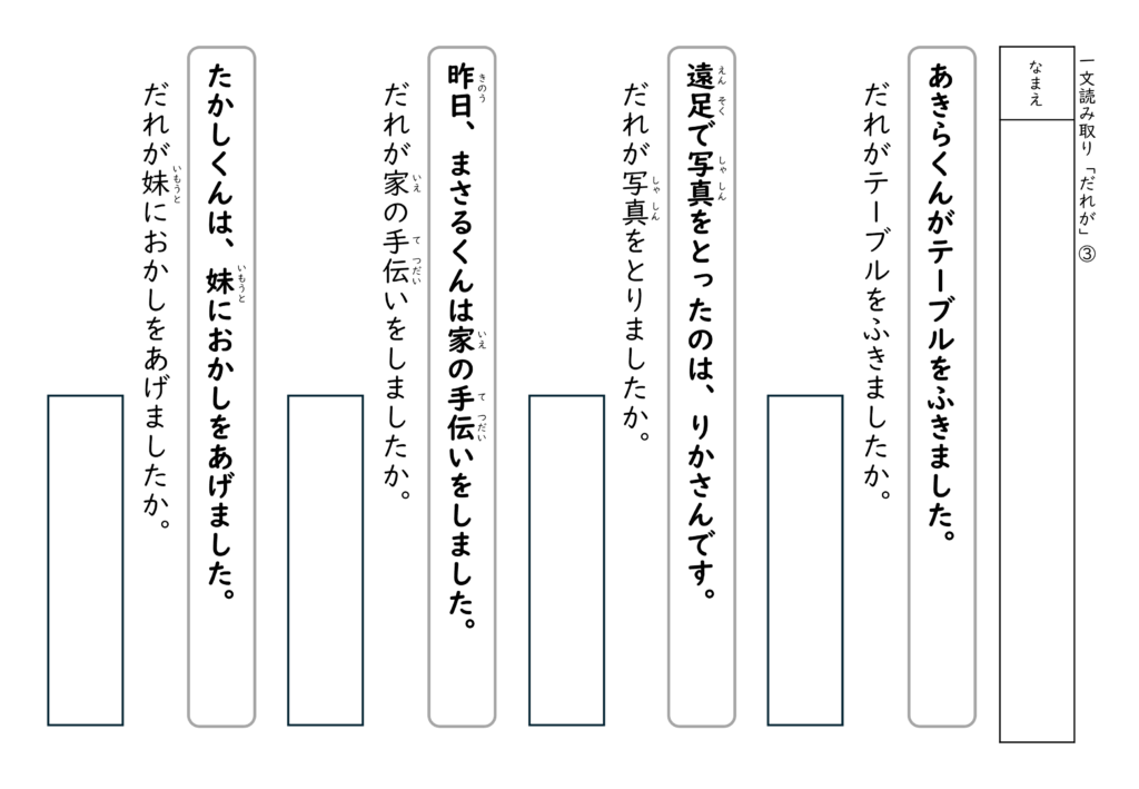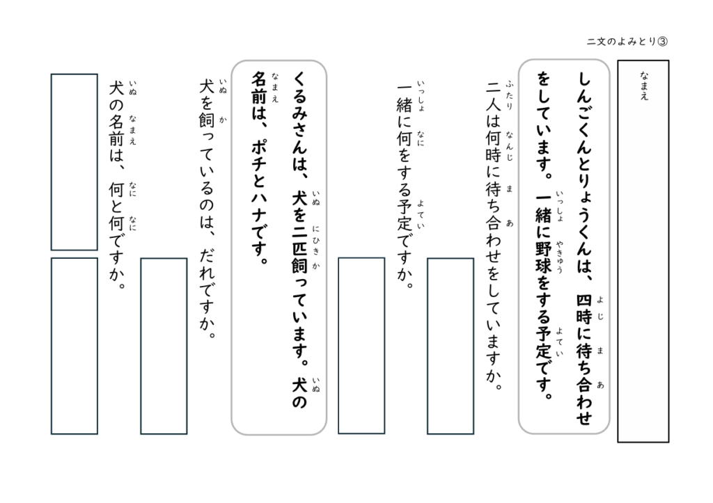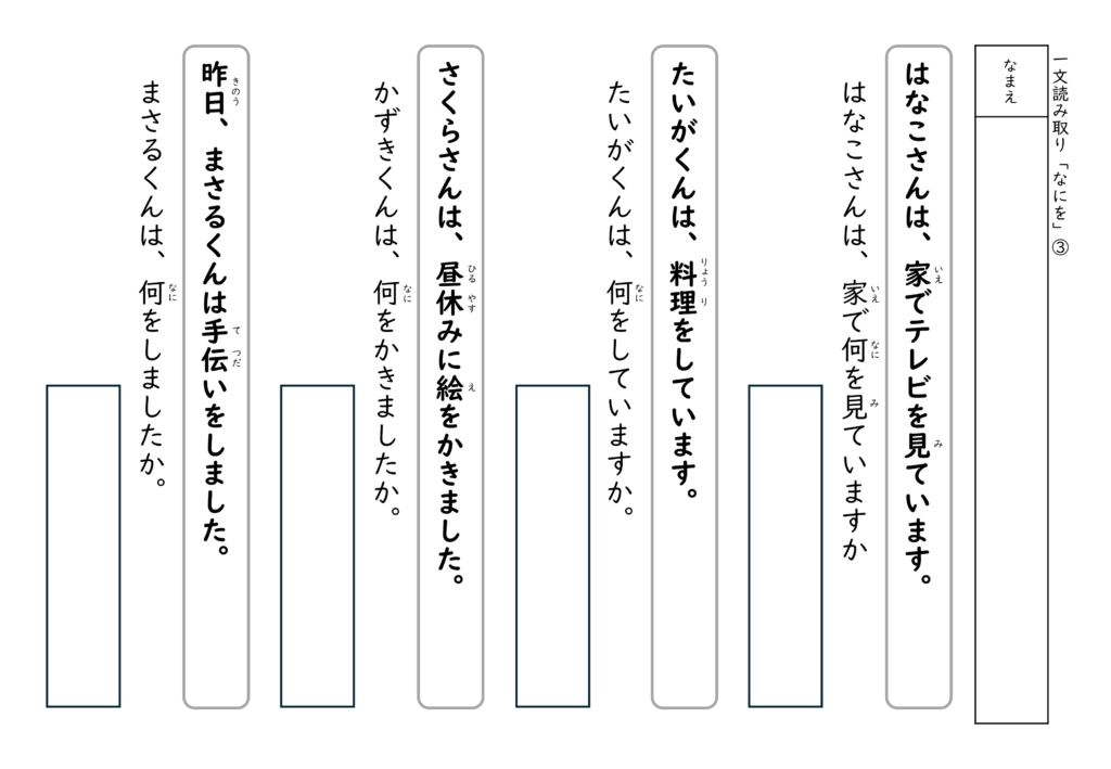文を読んで答える経験を積むことで、子どもたちは「文の中には答えがある」ということを少しずつ理解していきます。