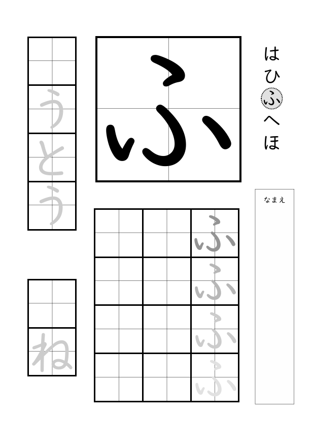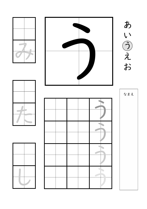このプリントは、ひらがなの正しい形を身につけ、書くことに親しみをもつことをねらいとしています。