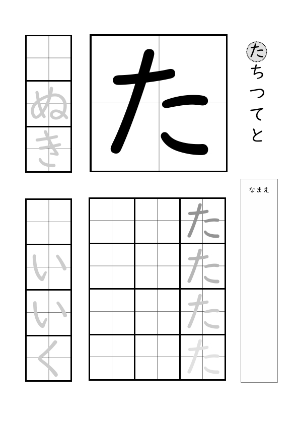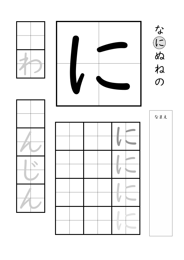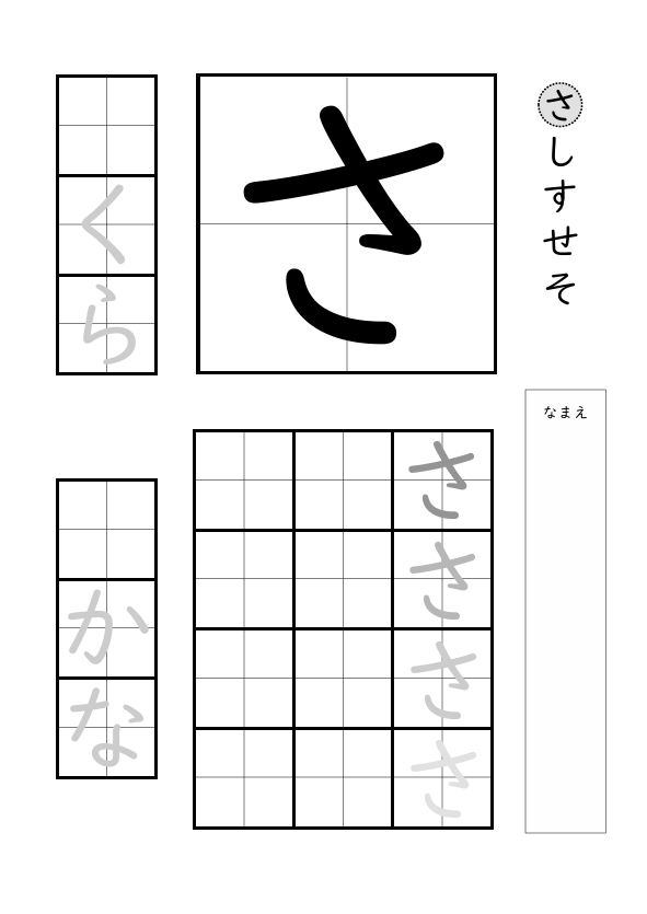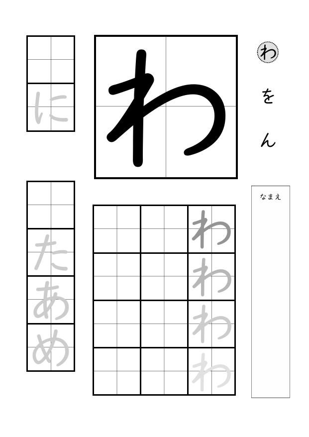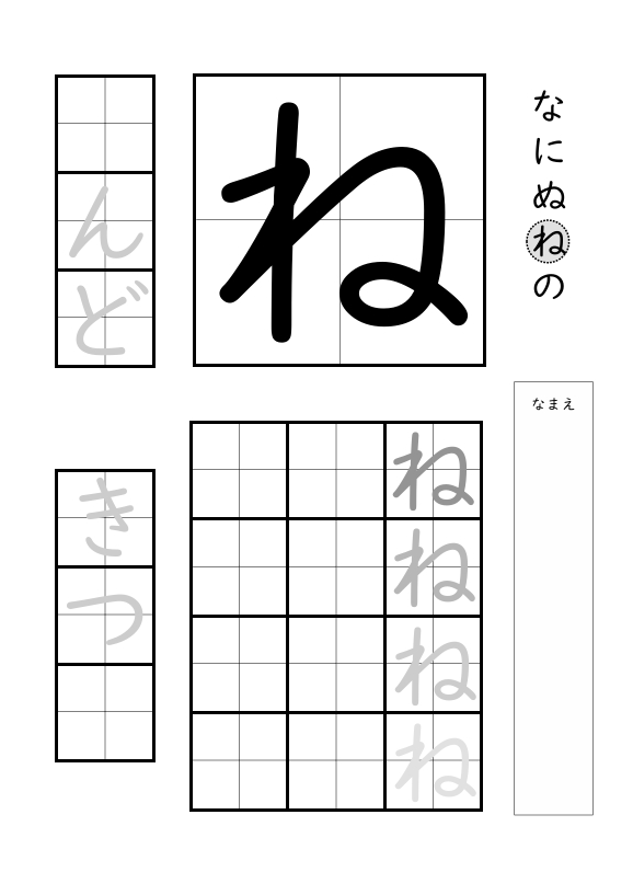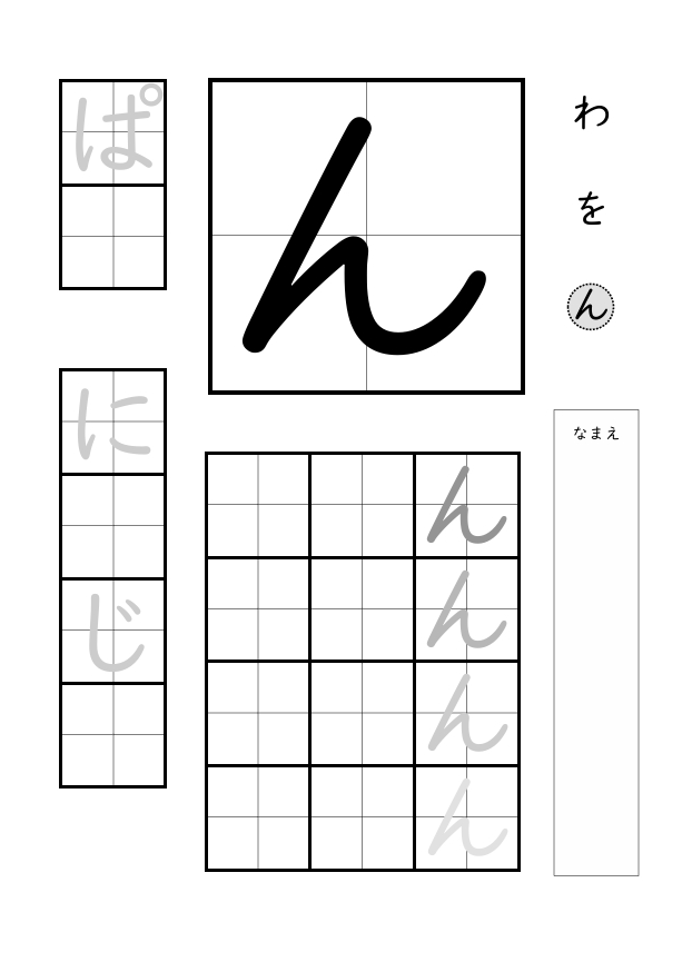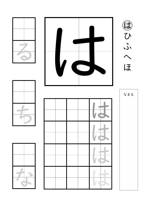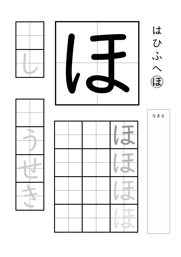 全て無料で使えるひらがな練習プリント(五十音別)です。