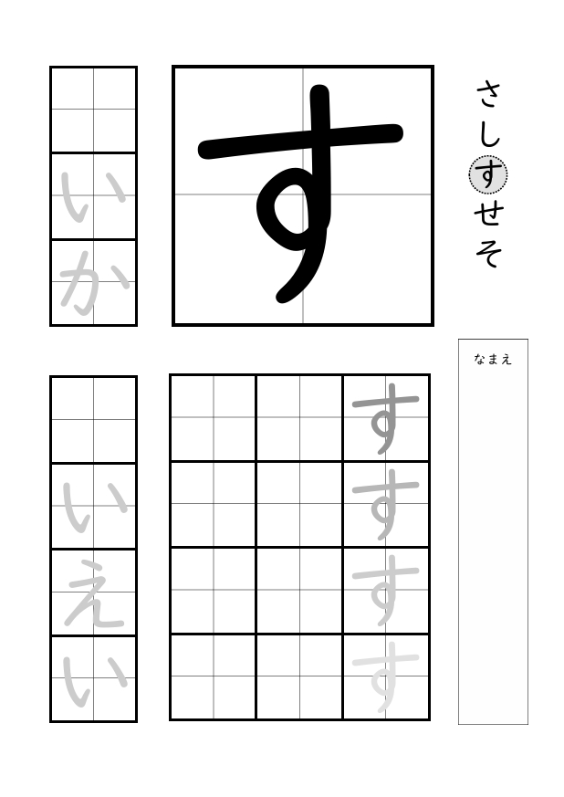 さらに、なぞり線なしの練習マスが8マスあり、自分の力で書く練習にも自然と移行できます。