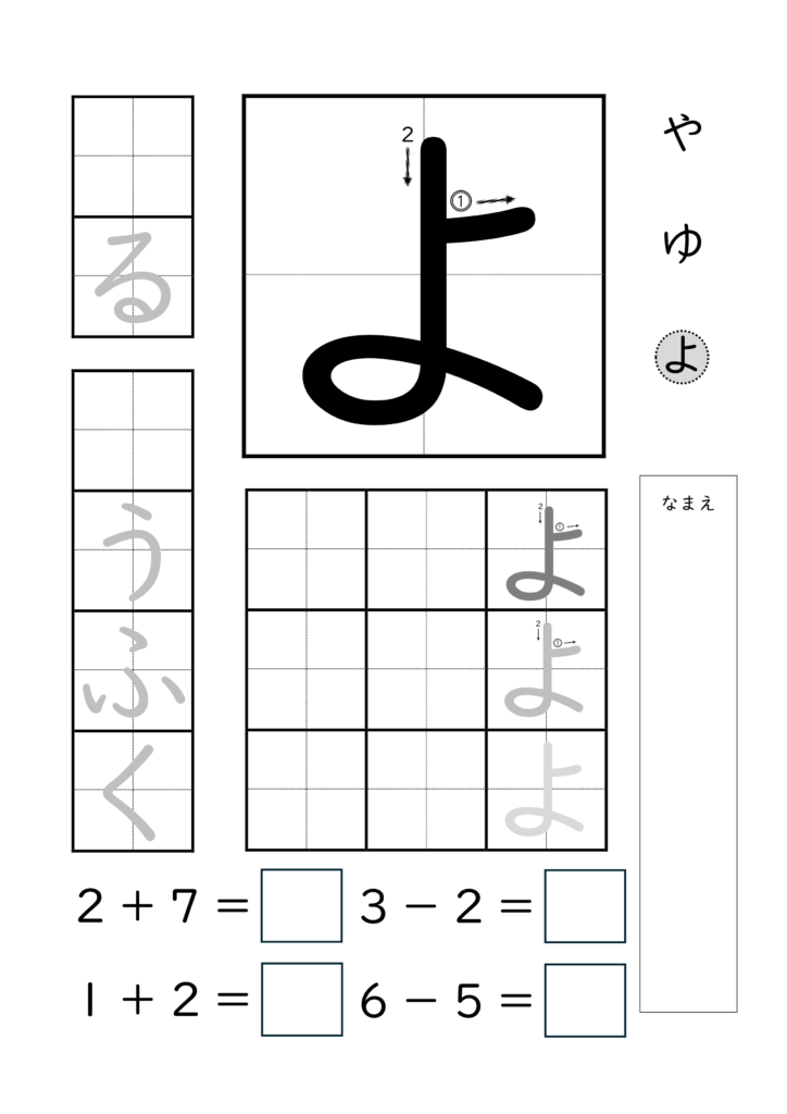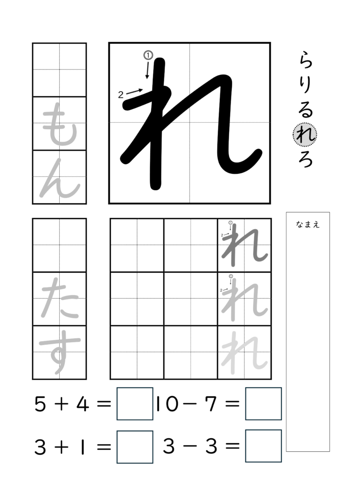 「宿題として出すために、1ページの中にひらがな練習とたし算ひき算の問題があるプリントがほしい」というリクエストから生まれたプリントです。
