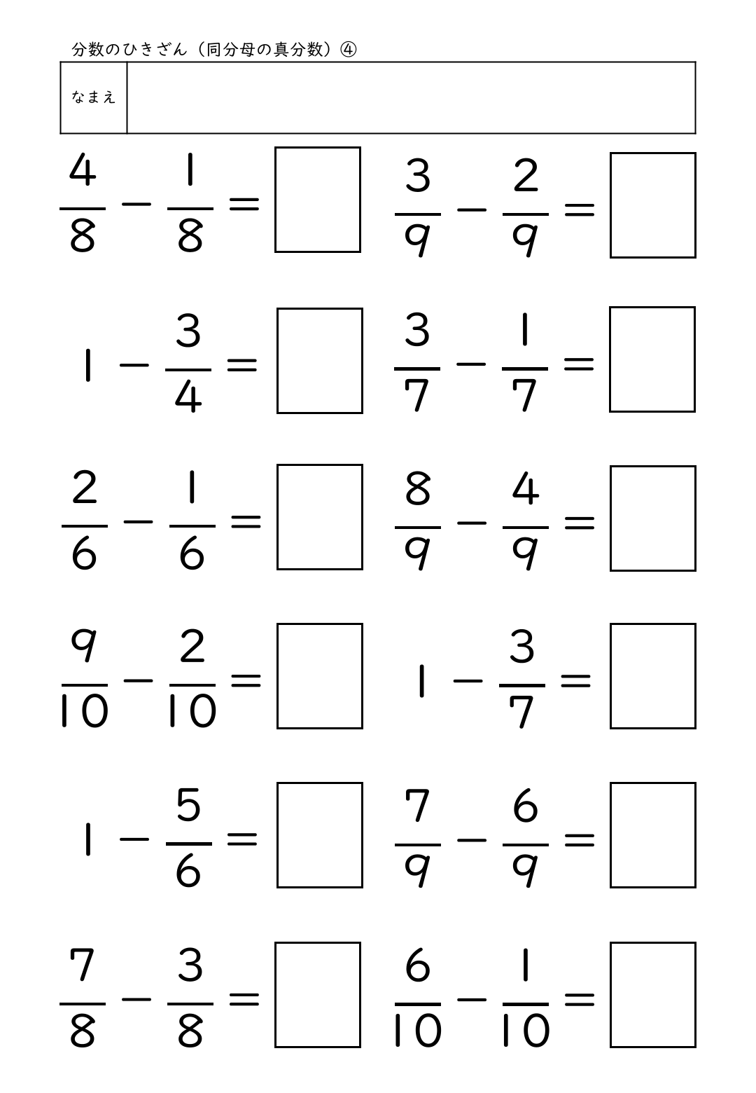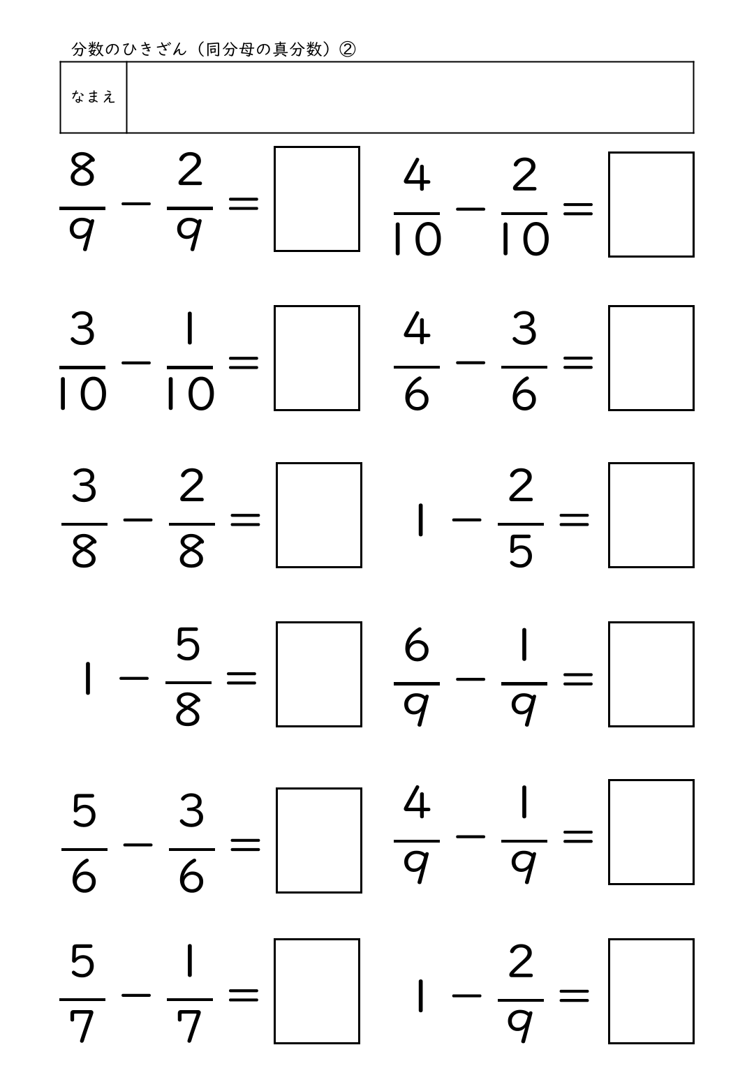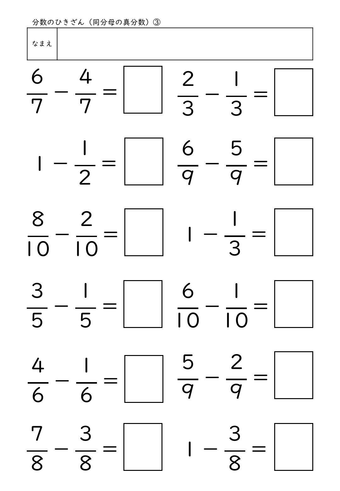 ・分数のひきざん(同分母の真分数)